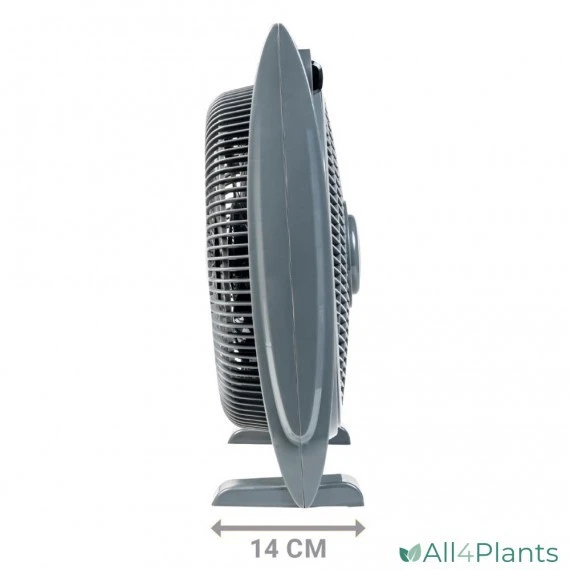 De korf heeft een diameter van ca. 33 cm. Door middel van het schakelpaneel kan de ventilator bedient worden. Het is mogelijk de ventilator, naast het in- en uitschakelen, op 3 verschillende snelheden in te stellen. Ook kunt u de ventilator uitschakelen met een timerfunctie en is in- en uitschakelen van het roterend rooster mogelijk. Bovendien beschikt de ventilator over omvalbeveiliging waardoor het apparaat zeer stabiel is.Â