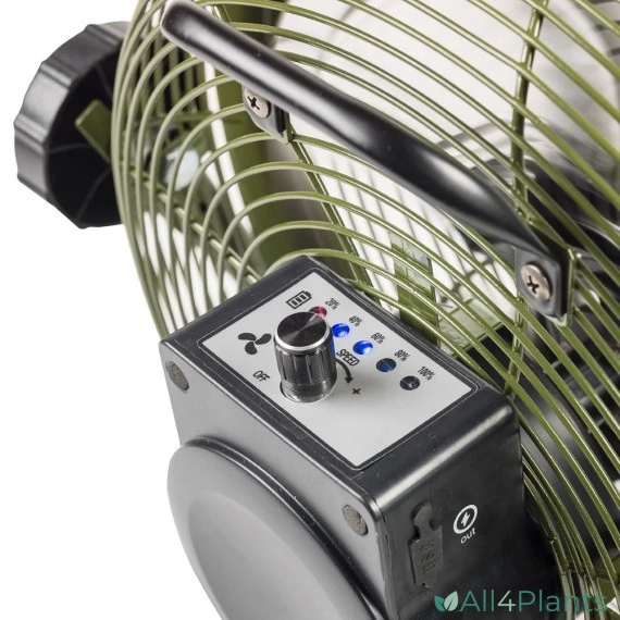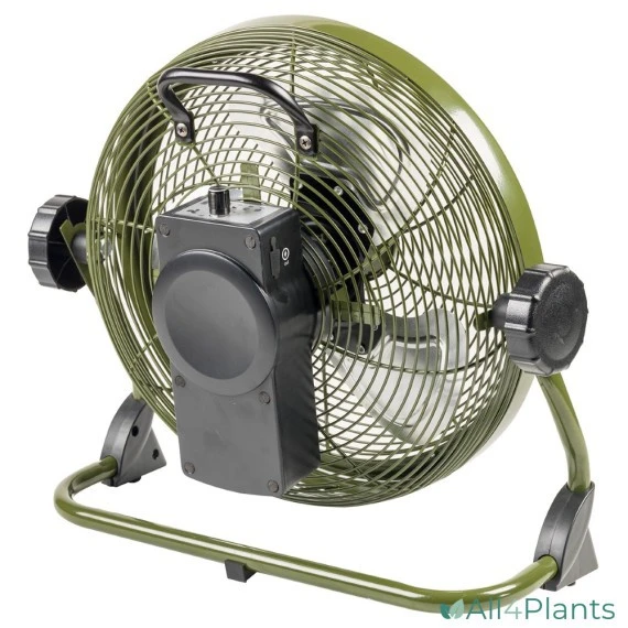 De korf heeft een diameter van ca. 35 cm en is verticaal verstelbaar in 130°. Door middel van 6 standen kan de ventilator ingeschakeld, uitgeschakeld en in snelheid veranderd worden. Bovendien beschikt de ventilator over een solide groene uitvoering, waardoor het de retro look nog maar eens benadrukt.