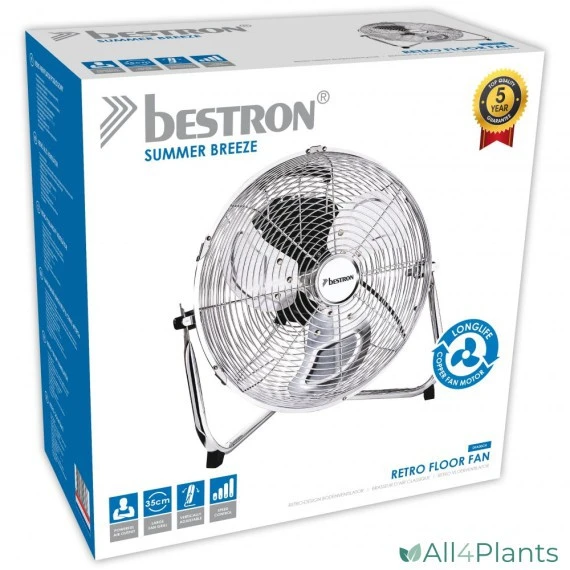 De Bestron DFA30CH retro vloerventilator uitgevoerd in chroom is uitgerust met een hoogwaardig kopergewikkelde motor en krachtige aerodynamische ventilatorbladen. Deze retro ventilator verplaatst 100% meer lucht dan standaard ventilatoren.
