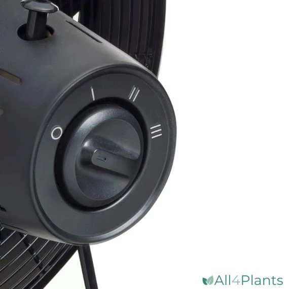 De korf heeft een diameter van ca. 45 cm en is verticaal verstelbaar. Door middel van 3 schakelaars kan de ventilator ingeschakeld, uitgeschakeld en in snelheid veranderd worden. Bovendien beschikt de ventilator over een zwenkfunctie van 80° waarmee de luchtcirculatie een groter bereik krijgt.