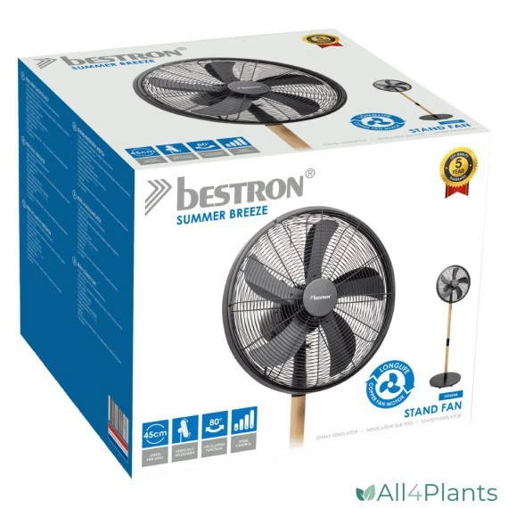 Met de Bestron DFS45WB haal je een modern en stijlvol vormgegeven design ventilator in huis die gezien mag worden in het interieur. Dankzij zijn zwarte kleur met houten design elementen is dit een echte blikvanger. De statiefventilator heeft 3 standen, zwenkfunctie, een hoogwaardig kopergewikkelde motor en 5 aerodynamische ventilatorbladen.