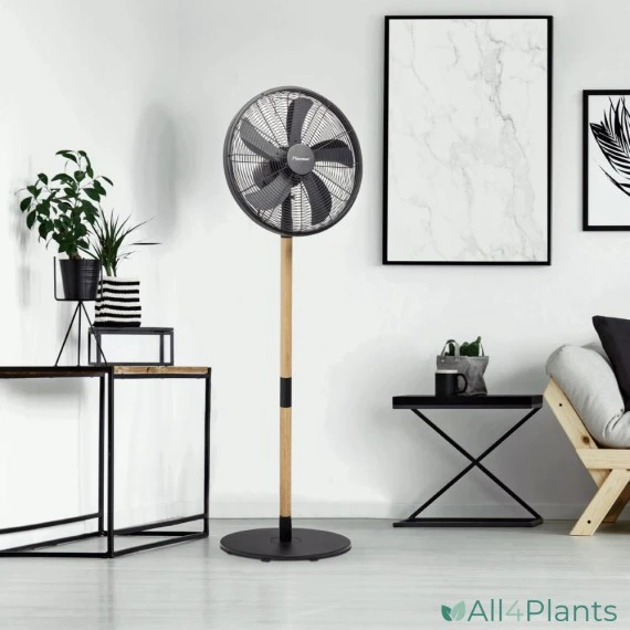 BESTRON DFS45WB DESIGN STATIEFVENTILATOR 45 CM ZWART / HOUTKLEUR 50 WATT