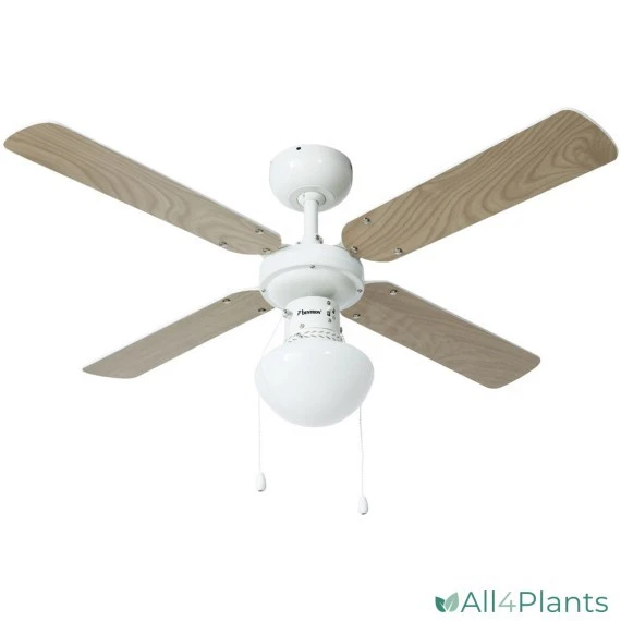 - 4 ventilatorbladen in wit of ahorn (omkeerbaar);