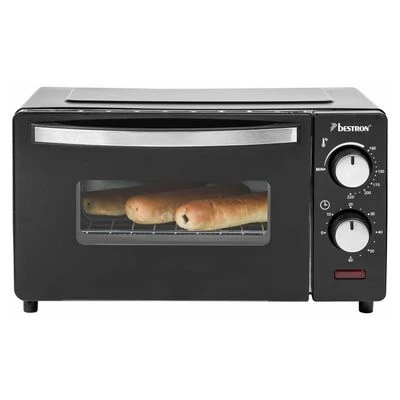 Deze Bestron convectieoven heeft 4 verschillende roosterhoogtes en werkt op basis van 2 verwarmingselementen die een gelijke hoeveelheid boven- en onderwarmte afgeven. De hittebestendige behuizing is uitgerust met een roestvrijstalen bedieningspaneel en een draaiknop voor het selecteren van boven- of onderwarmte. De 60-minuten timer met alarm is erg handig wanneer je door andere taken in de keuken wordt afgeleid. De dubbelwandige glazen ovendeur heeft een hittebestendige handgreep zodat je veilig kunt werken. De Bestron oven is heel eenvoudig te reinigen en is uitgerust met een indicatielampje en een automatische schakel-uit functie.