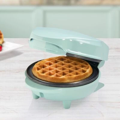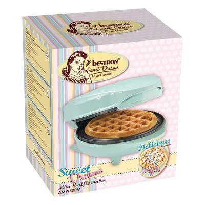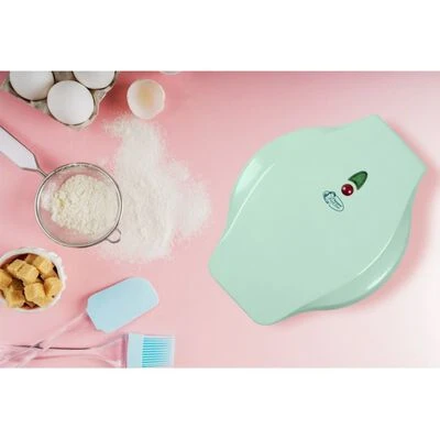 Dit mintkleurige AMW500M miniwafelijzer van Bestron is een compact apparaat met een anti-aanbaklaag en hittebestendige behuizing.