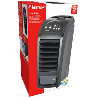 Deze Bestron mobiele luchtkoeler AAC5000 is een efficiënte, draagbare ventilator die de temperatuur van uw kamer op een voordelige manier kan verlagen.