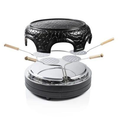 Je kunt je eigen pizza helemaal zelf samenstellen met al je favoriete ingrediënten. De keramische koepel voor constante warmteverdeling is ook geschikt voor het plaatsen en voorverwarmen van het pizzadeeg. De 800 W elektrische pizzamaker is ook ideaal voor het bereiden van minipizza’s, kleine tarte flambée of quiches tot 10 cm in diameter. De anti-slipvoetjes bieden veiligheid. De levering bevat 4 stalen spatels, een hittebestendige handgreep en een pizzasnijder.
