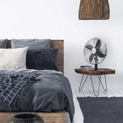 Deze tafelventilator is uitgerust met krachtige, aerodynamische ventilatorbladen die een sterke wind kunnen creëren. De motor van de ventilator is gebouwd met hoogwaardige koperen geleiders, waardoor de elektrische energie-efficiëntie van de motor is verbeterd en het geluidsniveau is verminderd. Deze tafelventilator heeft een 75° zwenkfunctie en het rooster kan verticaal versteld worden. De ventilator heeft 3 snelheden en een efficient ventilatorrooster met een diameter van 35 cm.