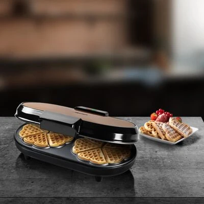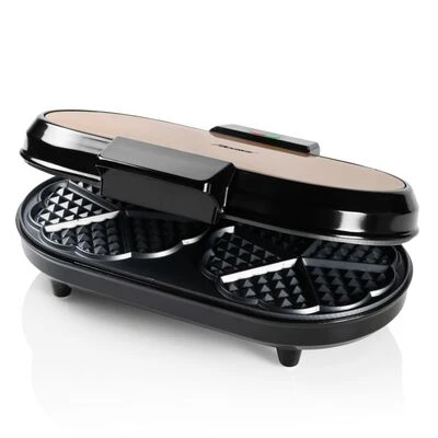 Met dit ADWM730CO dubbele hartjes wafelijzer in koperkleurig ontwerp van Bestron maak je in een mum van tijd de lekkerste hartvormige wafels!